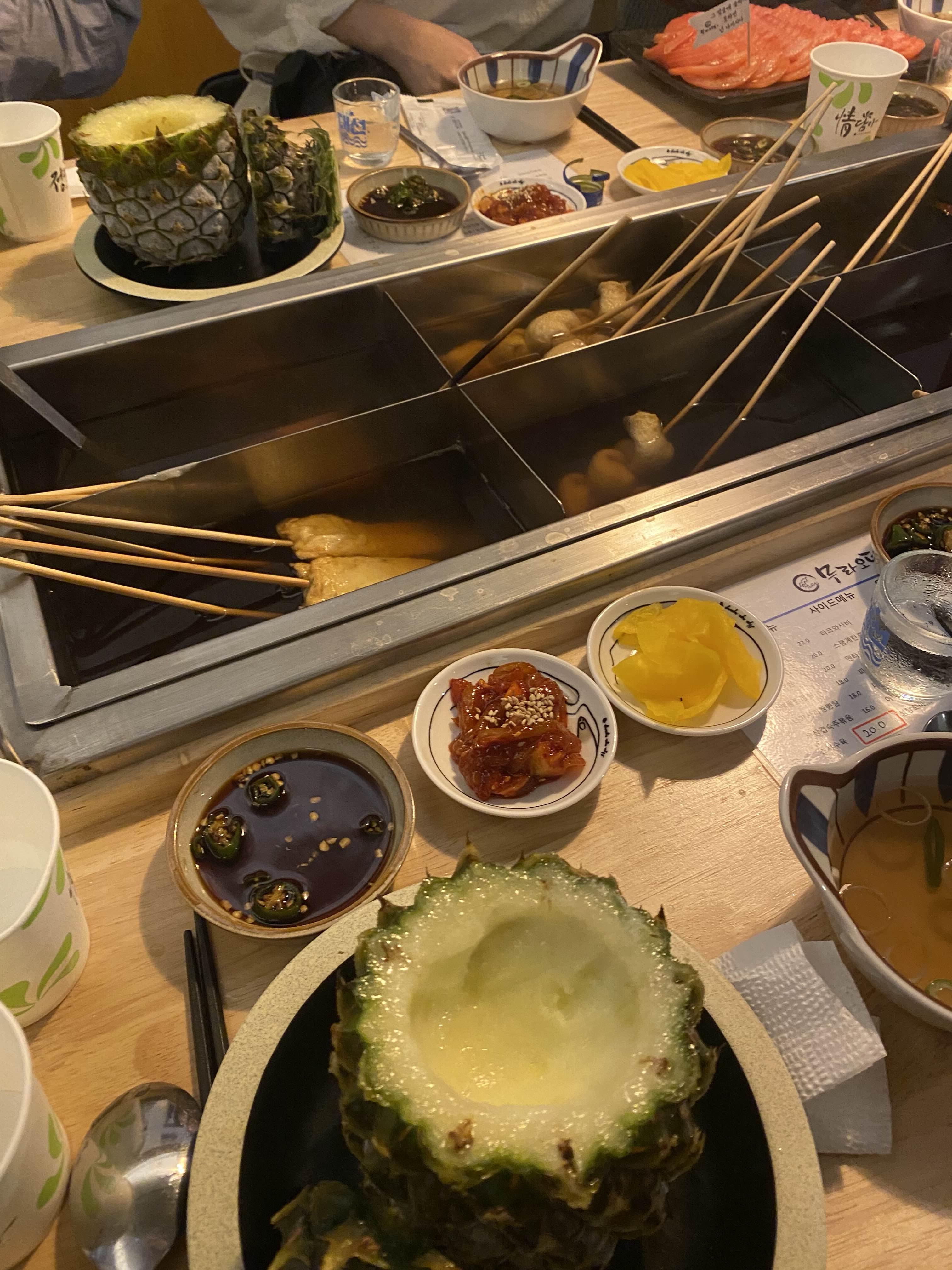 저는 오뎅을 먹기 위해 가서 오뎅바 석에 앉았답니다.