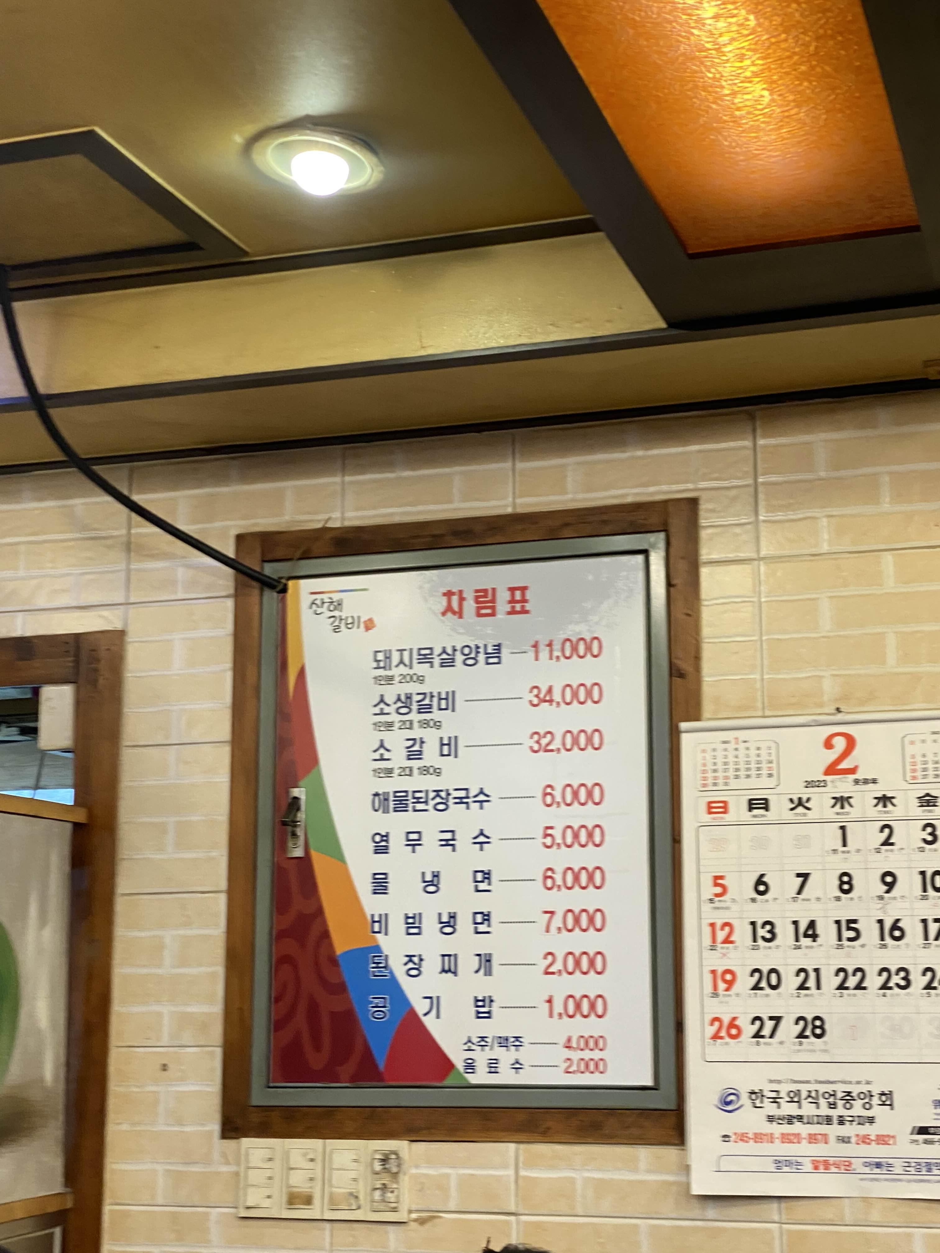 주소 : 부산 중구 광복로 39번 길 35 산해갈비